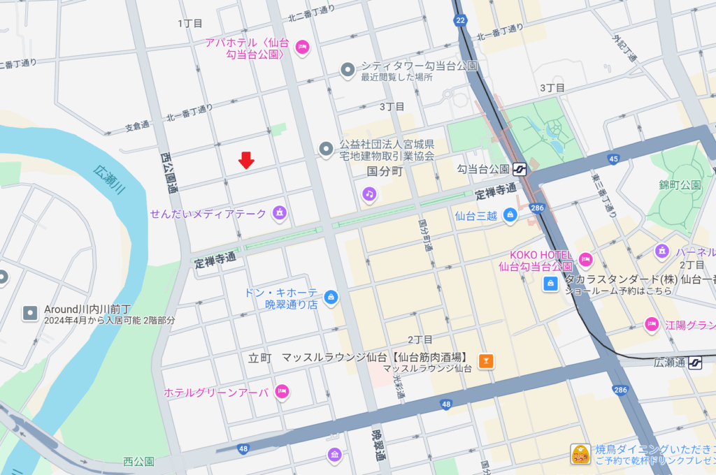 場所は、定禅寺通りメディアテークの北側に位置する青葉区春日町📍