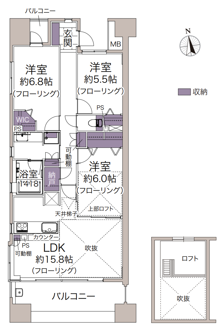 | 間取り | 3LDK+ロフト (80.48㎡) | 築年数 | 2002年9月(築23年) |